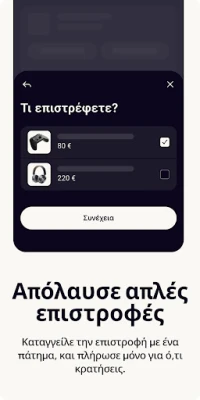 Πέρα από την ευελιξία στις πληρωμές, η Klarna απλουστεύει και την καθημερινή σας οργάνωση. Αποχαιρετήστε τις πλαστικές κάρτες και συγκεντρώστε όλες τις κάρτες επιβράβευσης σε ένα ασφαλές ψηφιακό πορτοφόλι εντός της Klarna. Έτσι, δε θα χάσετε ποτέ ούτε έναν πόντο και θα έχετε πάντα πρόσβαση στις προσφορές που σας αναλογούν. Επιπλέον, οι επιστροφές προϊόντων γίνονται πλέον παιχνιδάκι. Αναφέρετε την επιστροφή απευθείας μέσω της εφαρμογής Klarna και εμείς θα παγώσουμε αυτόματα την πληρωμή της αγοράς σας, προσφέροντάς σας ηρεμία μέχρι την πλήρη διεκπεραίωση της διαδικασίας.