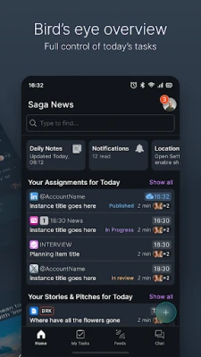 Η εφαρμογή Saga News είναι ο απαραίτητος σύντροφος για δημοσιογράφους. Προσφέρει άμεσες ειδοποιήσεις, επισκόπηση εργασιών και τη δυνατότητα ανέβασής μέσων. Δείτε τις ιστορίες που επεξεργάζεται όλη η ομάδα σας εύκολα.